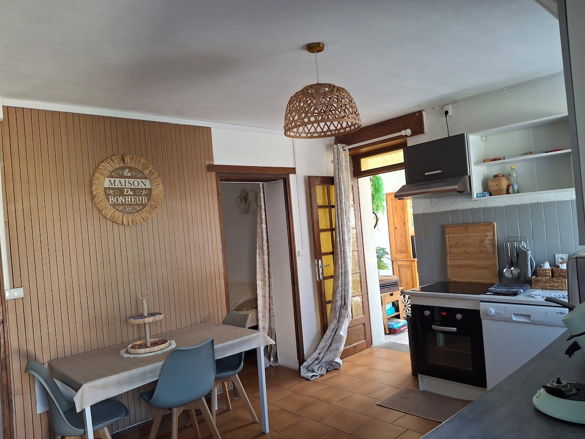Gammelt hus på 80 kvm, renovert med tre soverom, tre senger for to personer og to senger for én person, stue med sovesofa, senger redd opp ved ankomst, håndklær, dusjrom og toalett i første etasje. Utstyrt kjøkken med oppvaskmaskin, biljardbord, vaskerom: vaskemaskin og tørketrommel, veranda og lukket hage, hagemøbler og grill. babyutstyr Badet ovenpå er ikke renovert ennå, men det er rent. basseng over bakkenivå fra 06 til 09 hundevakt ingen elektrisk lading