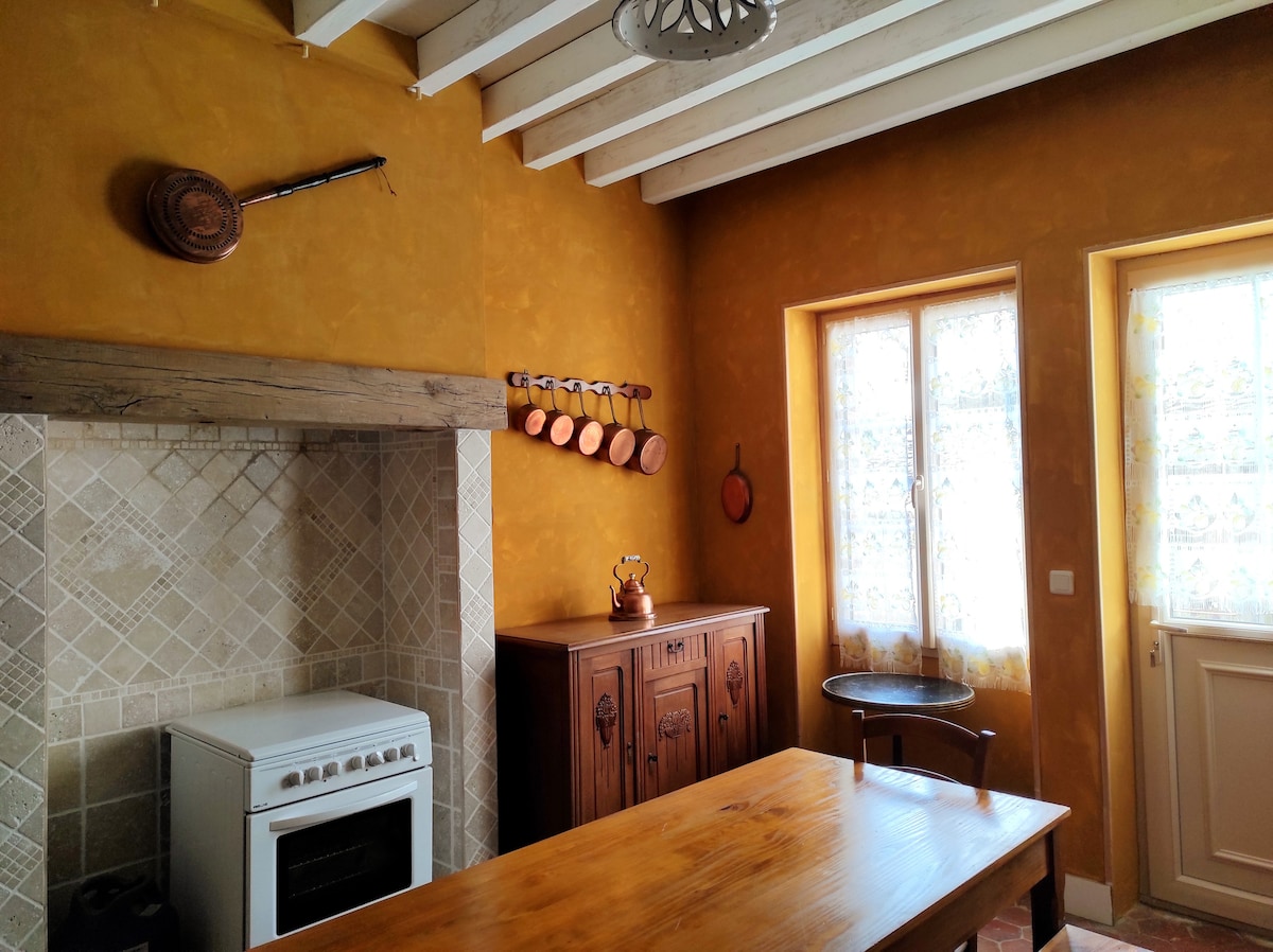 Frittstående hus, ved siden av eierens hus, med egen inngang. Det er ideelt plassert i sentrum av landsbyen Saints en Puisaye, 15 minutter fra slottet GUEDELON, 20 minutter fra slottet ST FARGEAU, innsjøen Bourdon, 10 minutter fra huset og museet til Colette i St Sauveur en Puisaye, Grottes d'Arcy s/Cure. Ideelt for personer med nedsatt mobilitet, huset er fullt tilpasset: i ett plan med elektrisk port, dusj, elektrisk seng, etc ...