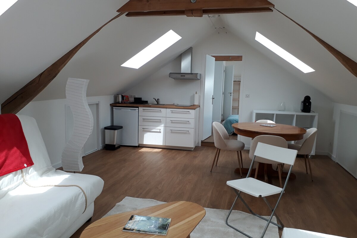 Slapp av i denne vakre låven som er renovert til et loft. Et unikt, rolig overnattingssted, to skritt fra motorveien og Montluçon. I første etasje: – 1 stue på 45 kvm – ett utstyrt kjøkken (+ mikrobølgeovn, Senseo-kaffemaskin) - 1 bad Ovenpå: – ett stort åpent soverom på 28 kvm med to senger – ett lite, koselig soverom under taket med én seng Ingen TV Frokostalternativer (for 5 euro per person) Sikker parkering, inngjerdet område. Mer informasjon om lagrangedemarie