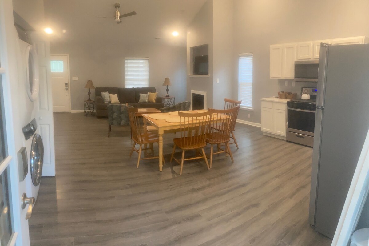 Nyt oppholdet ditt på denne perfekt designede nybygde villaen. Plassert på en familieeiendom omgitt av to hektar trær, i et rolig landlig nabolag. Mye privatliv, fred og ro, men bare fem minutter fra restauranter og butikker. 15 minutter fra Downtown Summerville, 40 minutter fra Charleston og ulike attraksjoner ved kysten. Villaen er atskilt fra hovedhuset og har ingen annen felles plass enn oppkjørselen. Røyking og kjæledyr er ikke tillatt. Vaskeritjeneste tilgjengelig for langvarige opphold.