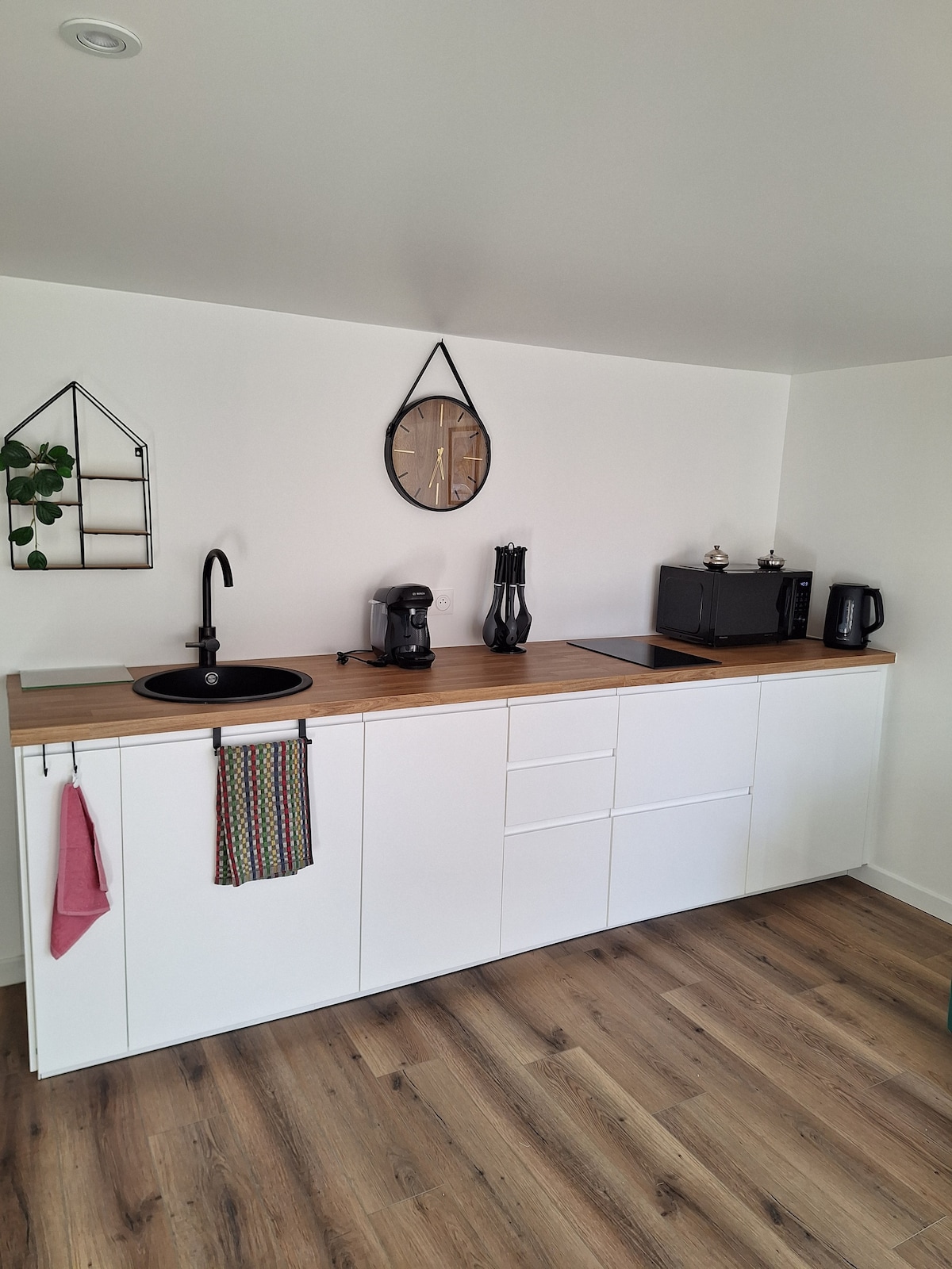 Slapp av på dette rolige og stilige stedet. Vi ønsker deg velkommen i første etasje i huset vårt, renovert, med et utstyrt kjøkken (to elektriske plater, mikrobølgeovn, kjøleskap, oppvaskmaskin, kaffetrakter og vannkoker,...). En TV-skjerm med trådløst nettverk. Sofaen i stuen blir til en seng, en queensize-seng 160X200 med omkledningsrom og et stort bad for å slappe av. Mulighet for å spise ute på terrassen i tre.