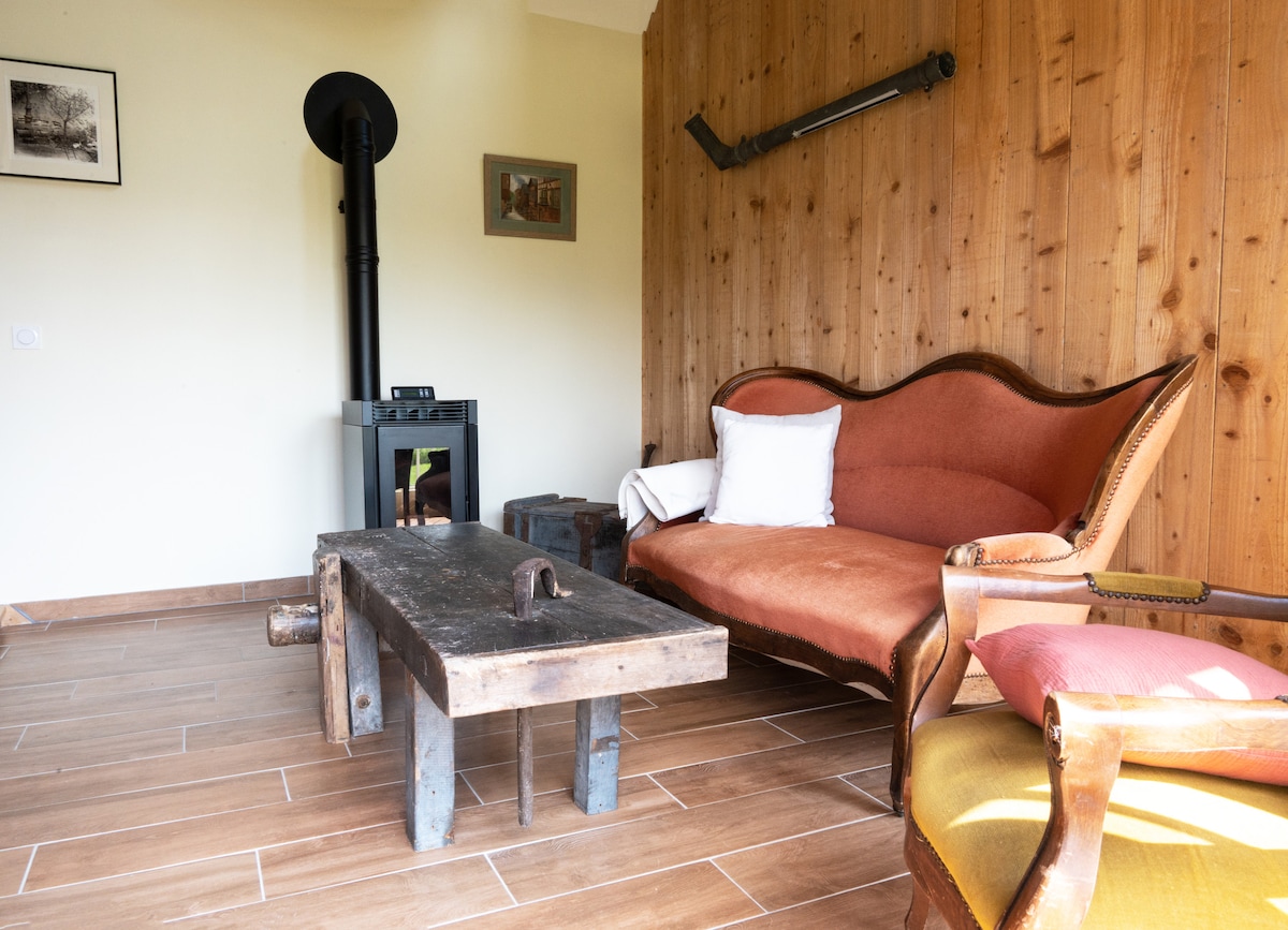 Velkommen til vårt tilfluktssted i Normandie. 🌿 Dette selvbetjente hjemmet ligger på eiendommen vår, og ble bygget i stedet for en gammel låve. Omgitt av en stor hage med frukttrær og økologisk grønnsakshage! Nyt også en petanquebane og sykler. I nærheten: grøntområder, slott, destillerier, stall, golf... 10 minutter fra Bernay togstasjon, 30 minutter fra Lisieux og 55 minutter fra Deauville med bil, er det det perfekte stedet å lade opp i naturen. Cristian og Alina