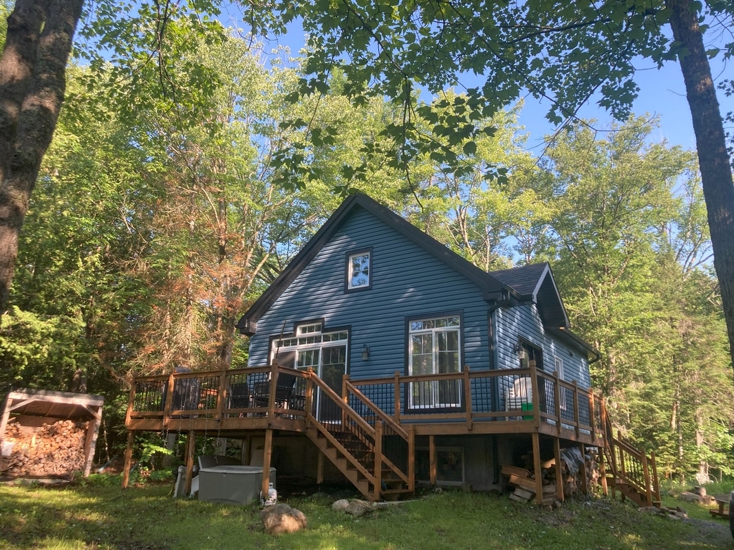 En liten rustikk hytte direkte ved innsjøen med en flott stemning! Bare 1 time og 15 minutter fra Montreal, dette er ditt gjemmested fra byens stress. Happy hour på den private bryggen er alt du trenger for å koble fra. En advarsel, du kan bli forelsket i den sjarmerende Beaulac! Hytta er liten og rustikk, men ganske elskelig, med en nydelig utsikt over vannet, samt en rik og energigivende hage som gir privatliv fra naboene. Innsjøen er ren, ofte testet og perfekt for en svømmetur!