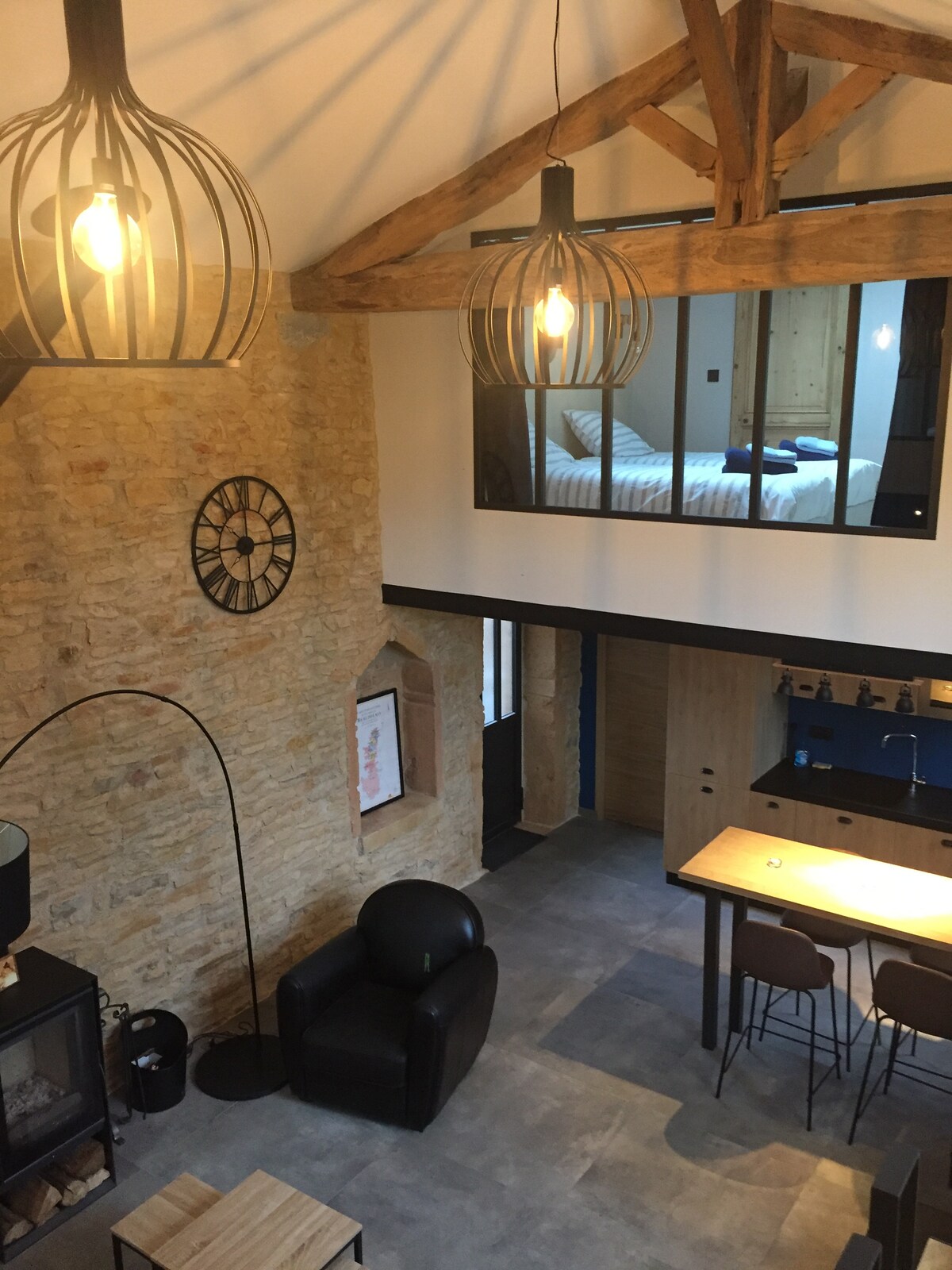 Grange sur la Colline ligger midt i vingårdene i Beaujolais og det omkringliggende landskapet, mellom landsbyene Marcy og Charnay (40 min fra Lyon). Denne bygningen klassifisert som "Heritage to Preserve" fra 1815 venter på deg for et rolig opphold. I hjertet av landsbyene i Golden Stones bor du i en renovert og komfortabel overnatting ved siden av eierens hjem. Renovert gammel kjeller med åpne områder med katedraltak, bjelker og synlige steiner.