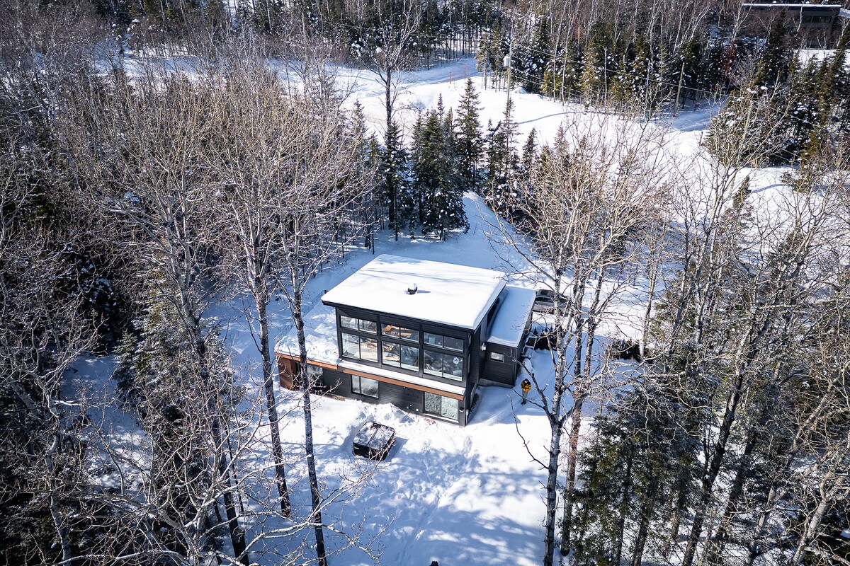 Villa med basseng som ligger mellom elv og fjell. Eskal, skiller seg ut med sin rene design og store vinduer. Fullt utstyrt, har boligen 1 spa, 3 peiser, 3 romslige soverom med eget bad, 1 spillrom og ikke minst 1 oppvarmet basseng med utsikt over St. Lawrence-elven! Du vil utvilsomt bli sjarmert av den spektakulære soloppgangen og den myke lyden av elven og de nærliggende fossefallene. Kapasitet maksimalt 6 voksne og 4 barn.