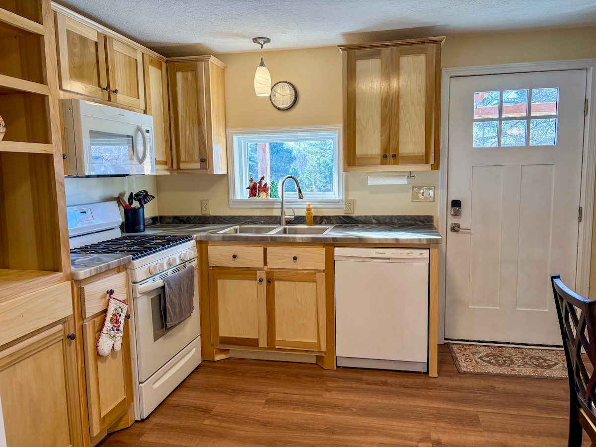Slapp av og koble fra i dette nyrenoverte gårdshuset fra midten av århundret. Nyt kaffe på verandaen eller en cocktail mens du ser på solnedgangen over åpen jordbruksmark. Stuen, spisestuen og kjøkkenet er alle åpne rom og flotte for samling. To skrivebord med store skjermer er satt opp for de som ønsker å jobbe «eksternt».