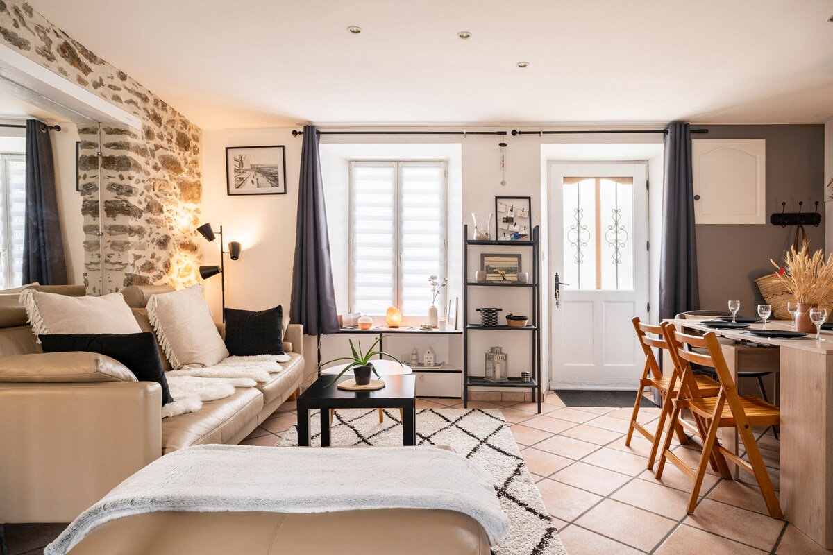 I hjertet av Dinan, la deg transportere av elegansen i det gamle Roma. Slapp av i en eksklusiv suite med privat balneo🛁. Nyt komforten av en queensize-seng med 🛏️hotellsenger, utstyrt kjøkken, tilkoblet TV med Netflix, fibertrådløst nettverk og en intim terrasse. Et steinkast fra Klokketårnet og pittoreske Jerzual. Parkering, restauranter og butikker i nærheten. Alt kommer sammen for en uforglemmelig romantisk ferie❤️.