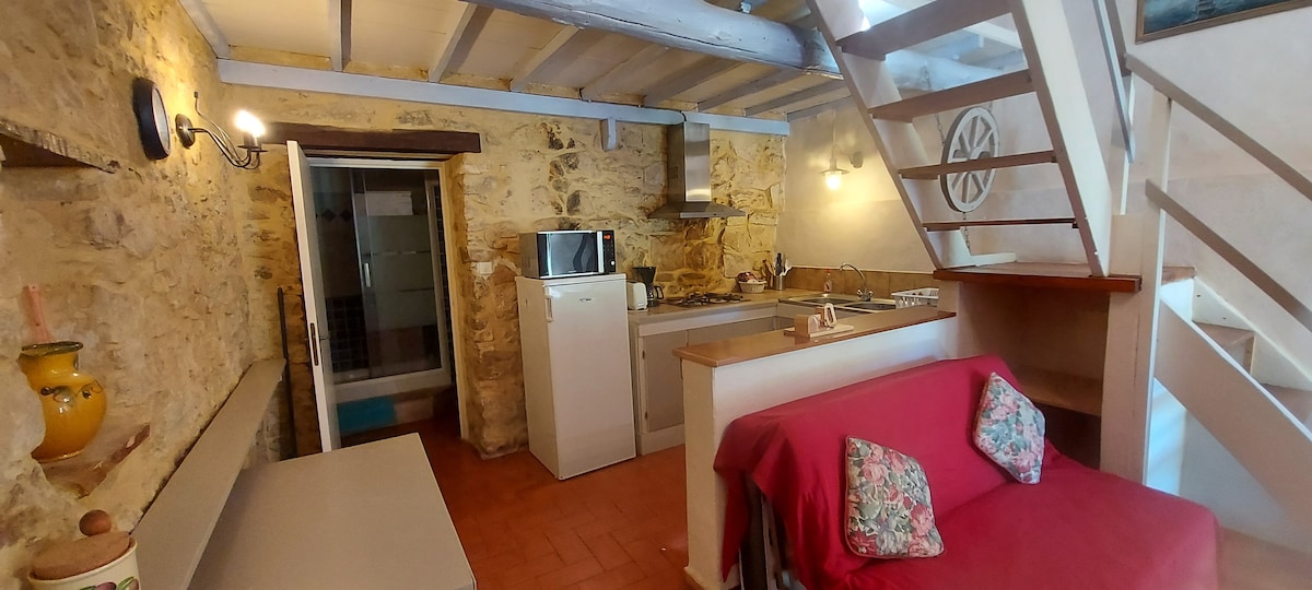 Hytta ligger på eiendommen til et slott fra 1543, og tilbyr et autentisk opphold. Interiøret har en innredning som matcher områdets historiske sjarm, med moderne bekvemmeligheter og et felles basseng i de fantastiske hagene utenfor. Dette er vår minste hytte, og det er ikke plass til en ekstra seng eller barneseng. De andre hyttene er alle større og kan gjøre dette. Alle tre hyttene kan leies separat eller sammen. De ligger på eiendommen til et slott fra 1500-tallet med vakre hager og et stort svømmebasseng omgitt av steinmurer. Den nedre salongen og sommerkjøkkenet i hovedslottet er tilgjengelig for deling. Tilgangen er ved sidehageporten, og alle hyttene er tilgjengelige med steintrinn – dessverre ikke egnet for rullestoler. Vi vil mest sannsynlig være til stede og bo i hovedslottet, og vi er tilgjengelige for å hjelpe og gi råd om restauranter og ting man kan gjøre i området. Vi deler bassenget og hagene. Den gamle landsbyen ligger i en vakker del av Frankrike som har beholdt sin ikoniske skjønnhet gjennom århundrene, og den føles fortsatt uberørt av det moderne livet mange steder. Opplev ekte lokale spisesteder og bakerier med naturskjønne turstier overalt. Parkering er på kirkeplassen nedenfor slottet. Det er en lokal taxitjeneste i landsbyen og bussforbindelse til Avignon, Banyols sur Ceze og Uzes, men leiebil anbefales. Vi er 20 minutter fra TGV-togstasjonen i Avignon og omtrent én time fra flyplassene i Marseille, Nimes eller Montpellier. Hyttene er helt private og rolige.