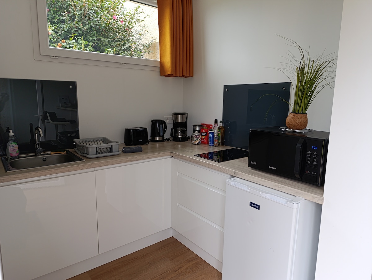 30 m² bolig i første etasje i nærheten av Puy du Fou. > Leilighet for to personer som består av: – en dobbeltseng [140 x 190] - kjøkkenkrok - et bad - toaletter – Kjøkkenet er fullt utstyrt [kjøleskap/mikrobølgeovn/vannkoker/tradisjonell kaffemaskin/brødrister/oppvask …]. - Sengetøy og håndklær er inkludert i utleieprisen. - Ikke tillatt.