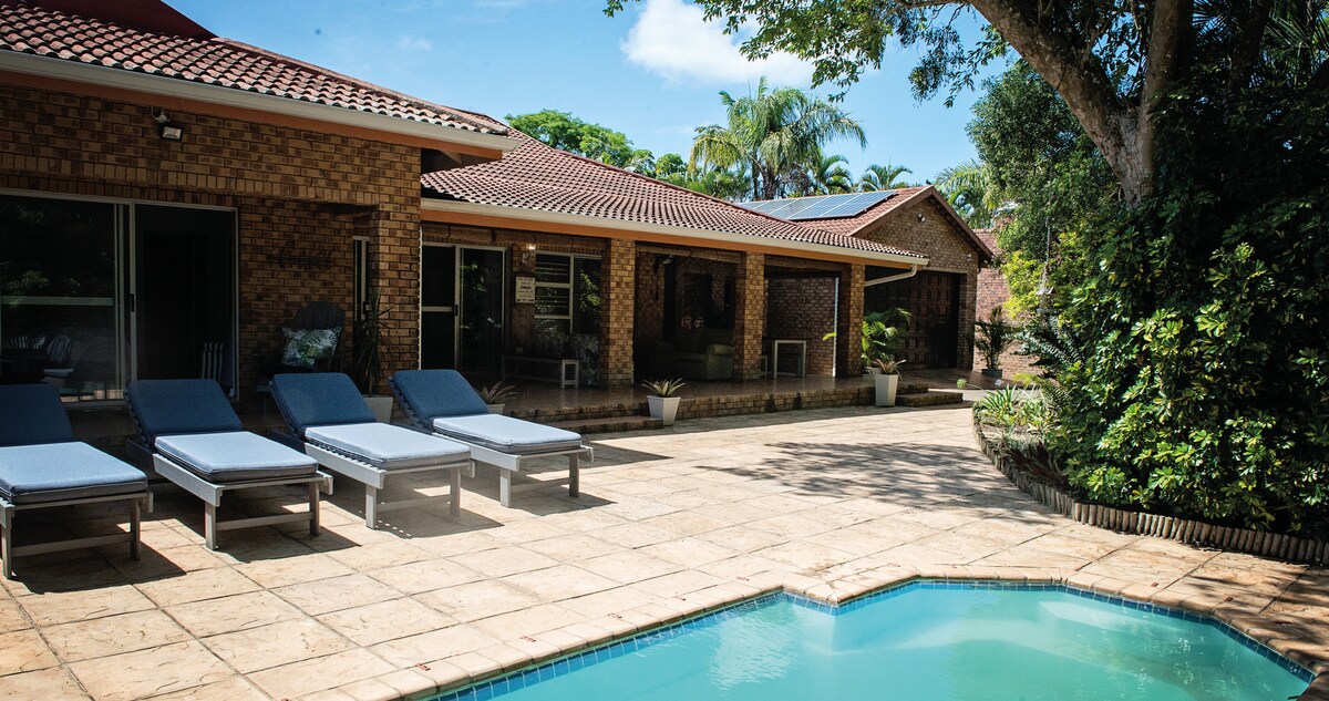 Reis til vårt nyrenoverte fristed – det perfekte familieferiestedet! ☀️ Nyt høyt tak, et romslig kjøkken, stor stue og et ekstra solenergisystem. Slapp av på terrassen ved peisen med utsikt over den frodige hagen vår.🌿 Ideelt beliggende: kort spasertur til butikker og restauranter 🌊 minutter fra stranden 🦛 nær iSimangaliso Wetland Park (Verdensarv) Oppdag den perfekte blandingen av komfort og eventyr i hjertet av naturen. Familieturen din starter her!
