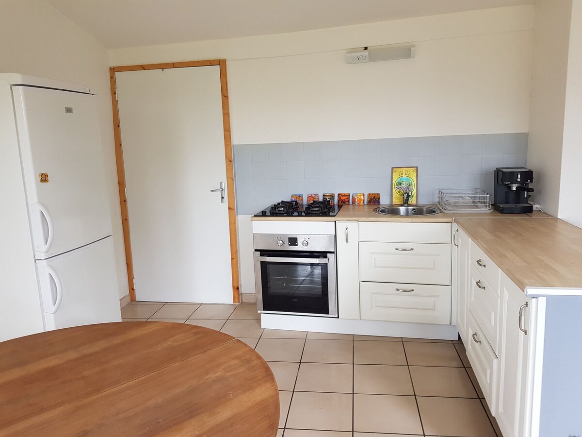 Leiligheten ligger 15 minutter fra det vakreste markedet i Frankrike i Montbrison, i et byområde som gir rask tilgang til hovedveiene. Vi ønsker deg velkommen til disse 3 rommene med soverom, en stue med åpent kjøkken, alle fullført av et rom ved inngangen innbydende og praktisk takket være det store oppbevaringsskapet. En 9 m2 treterrasse fungerer som det fjerde rommet for lange sommerkvelder. Leiligheten ligger ved siden av huset vårt.