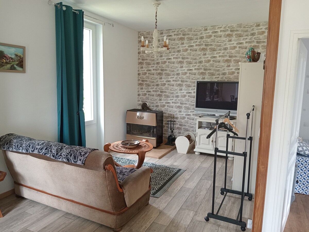 Dette gamle annekset ligger i en veldig liten grend, mellom enger og skoger, hvor det er fint å bo og veldig stille. Renovert i en ren og gjennomført stil, slik at du kan føle deg som om du er i et koselig, koselig lite rede. På terrassen eller i skyggen av lønnetreet kan du beundre den vidstrakte utsikten over Puy-de-la-Roche, som skifter farge i ulike nyanser avhengig av tid på dagen og årstid. Naturen dominerer og inviterer deg til å roe ned, reflektere og slå deg til ro.