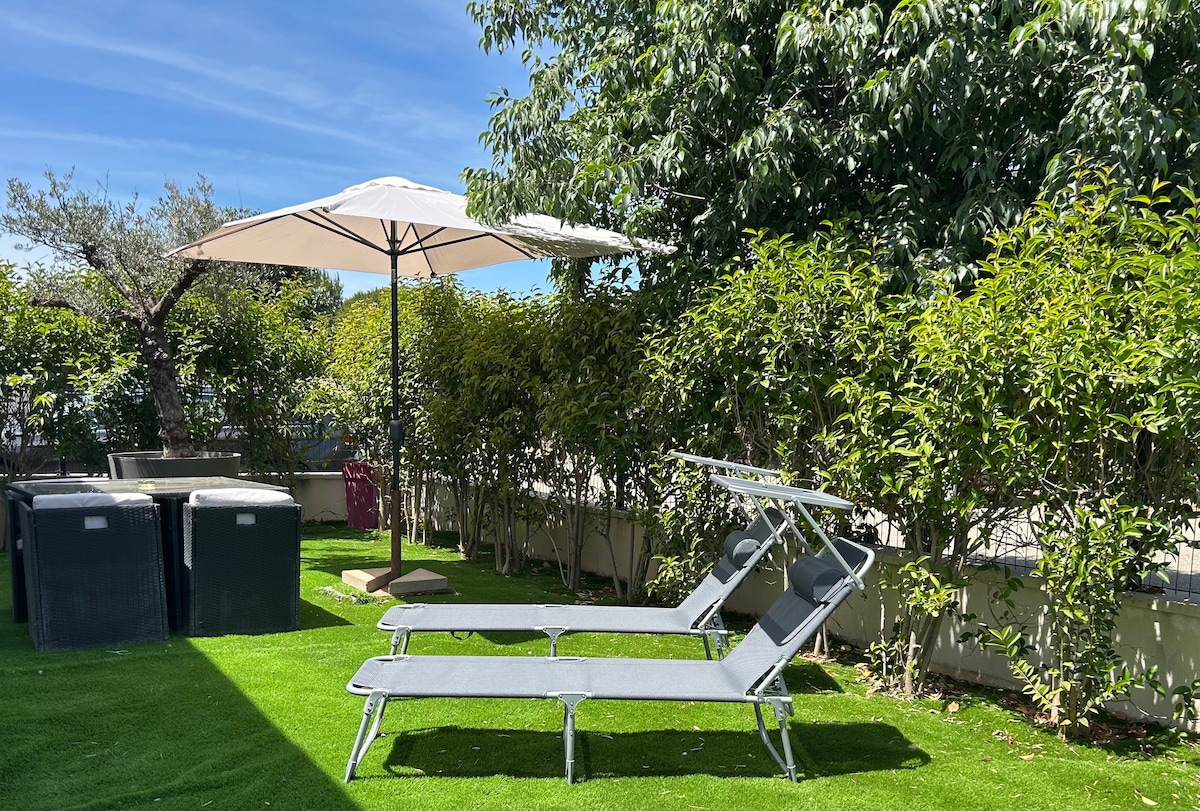 Velkommen til vår private oase for 1 eller 2 personer i hjertet av la roquette! Nyt det oppvarmede saltvannsbassenget omgitt av tropiske planter. Stedet vil tilby deg en oase av skygge og ro. Spis frokost, aperitiff eller kok ved bassenget på utekjøkkenet. Soverommet har klimaanlegg og er utstyrt med luksuriøst sengetøy av hotellkvalitet og økologisk sengetøy, for å sikre at oppholdet ditt er avslappende og minneverdig.