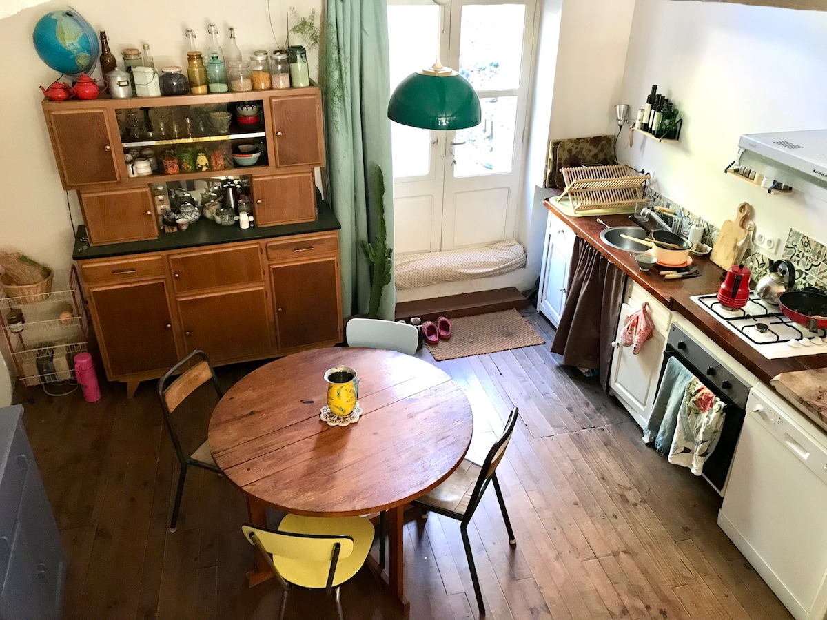 Etter å ha renovert slottet Candeze fra 1480, som ligger i en av de vakreste landsbyene i Frankrike, rehabiliterte vi nedre del av slottet, for å gjøre det til en leilighet på 100 m2 med privat tilgang på en av de vakreste gatene i denne middelalderlandsbyen. Ro,hvile,friskhet venter deg i interiøret eller gamle asfaltering, steinhvelv,gamle dører, antikke møbler skaper dekorasjonen. Romslig leilighet med et stort familierom. Du har tilgang til en stor tilstøtende park.