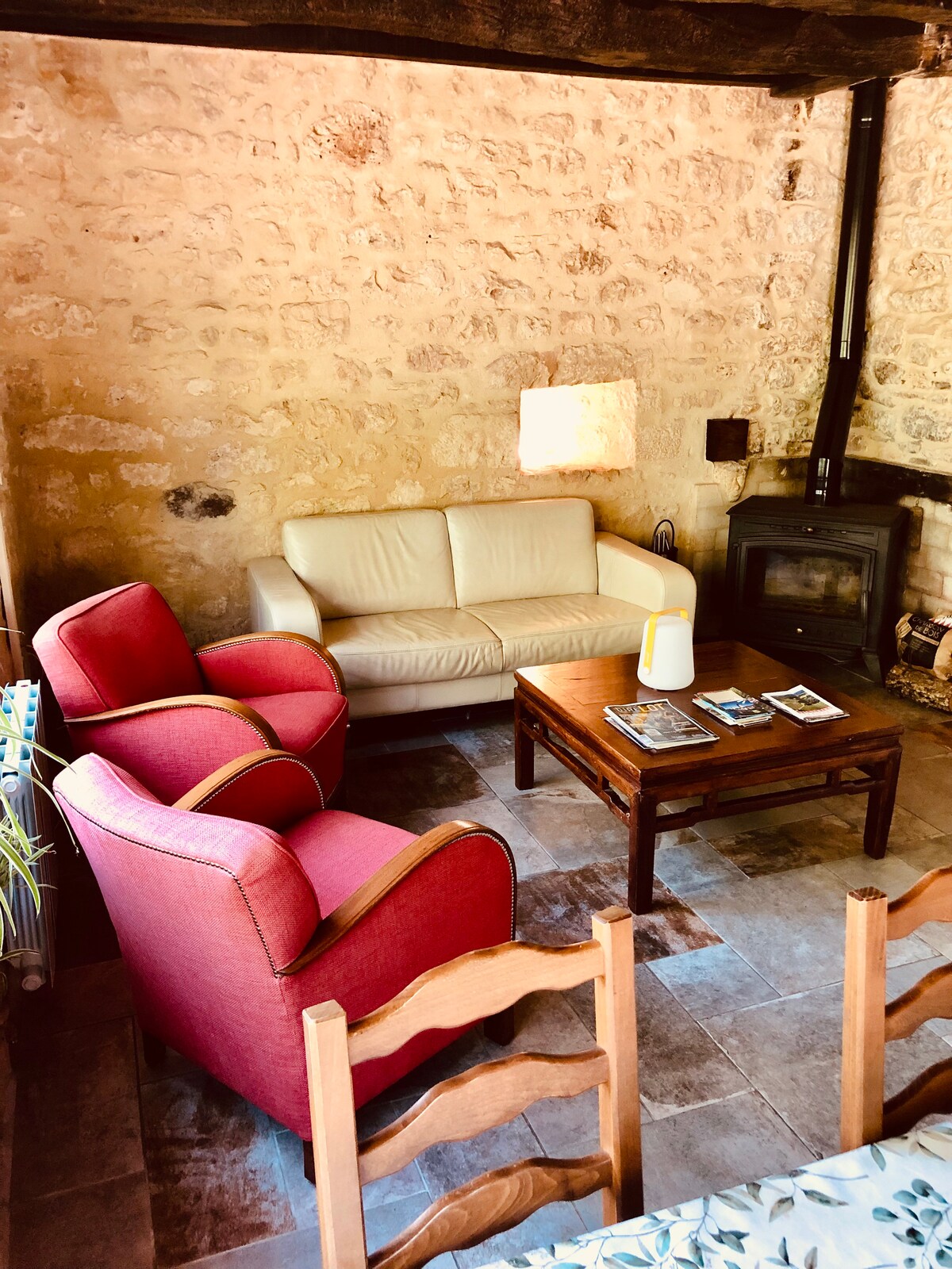 Vakkert frittstående steinhus i enden av en liten privat landsby på en eiendom på 8 ha midt i naturen. Boligen har et soverom med bad, en stue med vedovn og et åpent og velutstyrt kjøkken og en privat terrasse med utsikt over landskapet. Tilgang til felles svømmebasseng (uten gjerde eller lås) med utsikt over engen og skogen for total avslapning.