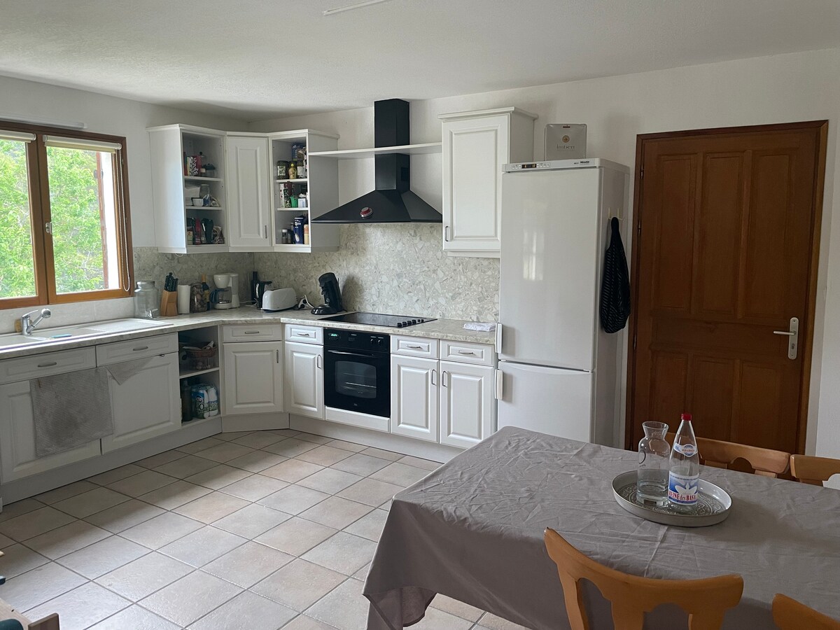 I Drôme provençale, ved siden av Grignan, mellom vinranker og lavendel, er vår hytte den eneste på eiendommen. Den ligger i andre etasje, for fire voksne, tilstøtende eiernes hus. Stue på 48 m2, med fullt utstyrt åpen kjøkkenløsning, sittegruppe med TV 127 cm, aircondition. Master-suite på 35 m2 med italiensk dusj, doble vasker, separat toalett, aircondition. Mezzanin på 30 m2. De to sengene er 160x200. Privat terrasse med Weber grill.