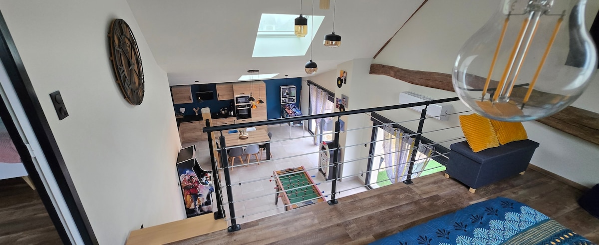 Luxury Cloud ☁️ Suite i hjertet av Troyes! Unn deg en tidløs natt i en boble av komfort, design og spenning. Kingsize-seng 💎 5* for å flyte som Sangoku på stratus Duo sensorisk 🚿 dusj 🕹️ Arkadeterminal med 8000 spill 🎬 Oppslukende 4K-kino – selv på dagtid! 🌳 Trehuske med utsikt over trærne 🛋️ Skysofa forbedret med LED-nordlys 🧳 Bestill din himmelske ferie – og la deg rive med av skyene