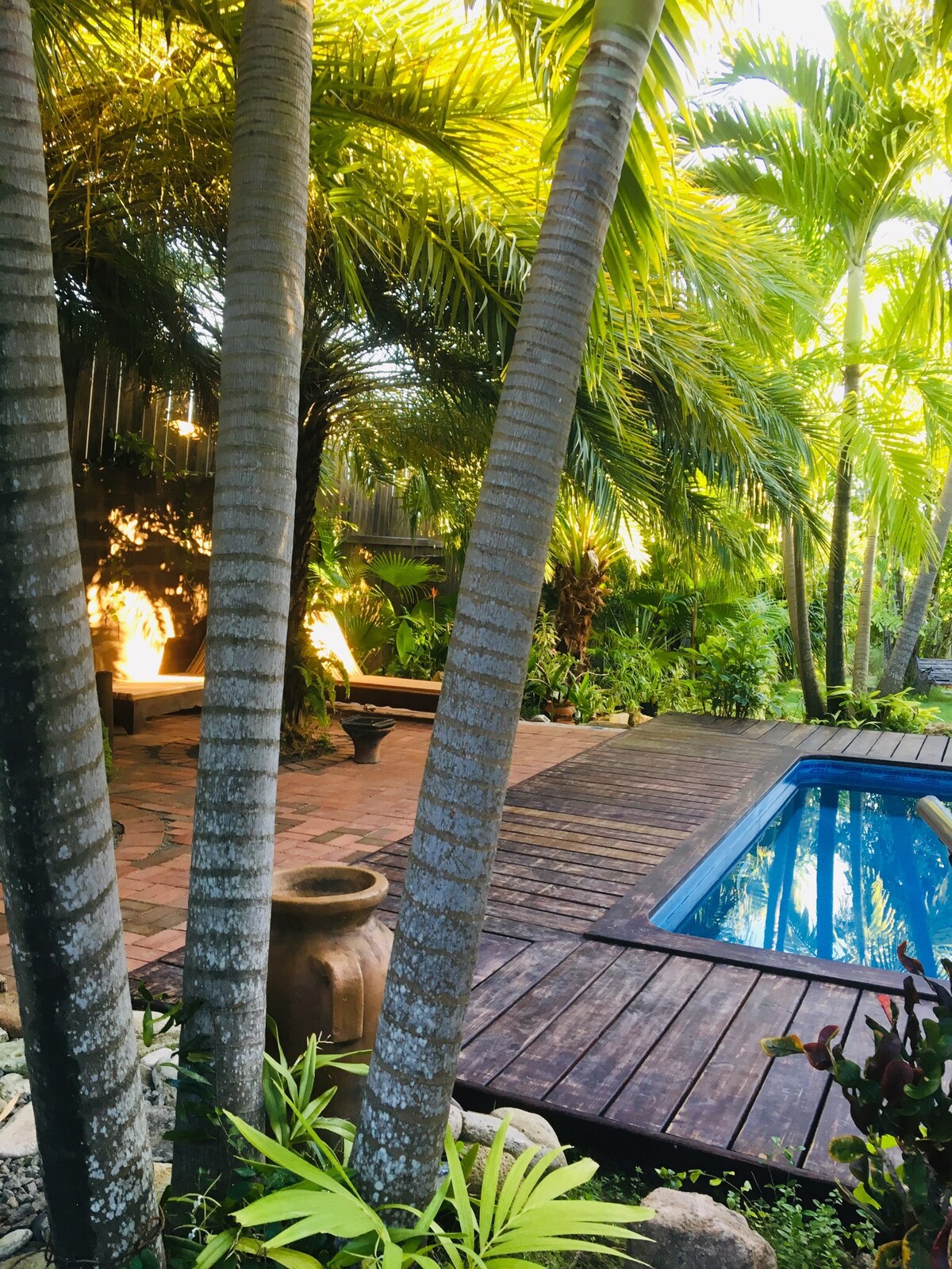 Bamboo Cottage er for naturelskere, og ligger i en tropisk hage innenfor fem minutters gange til sjøen. Ligger blant et stort utvalg av palmer og klynger av høy bambus. Den store verandaen fører inn i det åpne kjøkkenet og stuen, som er forbundet med en spiraltrapp til soverommet i andre etasje. Hytta er romantisk og privat, med egen inngang til hagen. En ekstra utendørs dusj utenfor verandaen. Ro blant de mange fuglene og raslingen av bambus!