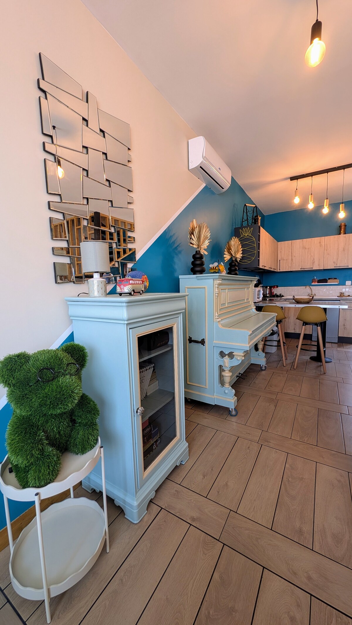 💕 Suite romantique avec balnéo Escapade romantique à Mimizan dans notre suite cosy pour deux, à seulement 10 min des plages. Profitez d’une baignoire balnéo relaxante, d’un lit Queen Size confortable et d’un vidéoprojecteur 4K pour vos soirées cinéma. L’éclairage tamisé et la terrasse privée créent une atmosphère intime et chaleureuse, idéale pour un week-end en amoureux ou une pause détente à deux. Un véritable cocon pour se retrouver et profiter d’un séjour inoubliable