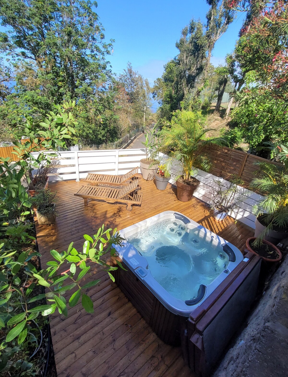 Etter å ha besøkt vår vakre øy, kan du slappe av i det private bassenget (oppvarmet fra mai til midten av november) eller i spaet, som er eksklusivt dedikert til din bolig. Ideell for naturelskere, ligger Hibiscus-bungalow 320 m over havet med panoramautsikt over Saint-Leu-bukten, bare 10 minutter fra lagunen og sentrum. Du vil sette pris på rask tilgang til Tamarins-veien, hovedveien i vest på Reunion. En åpen garasje er reservert for huset.