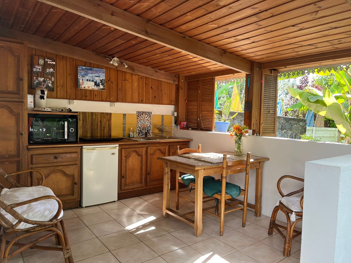 Fullt utstyrt bungalow. Ligger 50 METER (faktisk) fra Ermitage-lagunen og den praktfulle svømmestranden som er beskyttet av barrierevet, og befolket av flerfarget fisk. Bungalowen på 19 kvm er omgitt av en liten tropisk hage, helt privat og inngjerdet. Den har aircondition og er utstyrt med en dobbeltseng (140 cm), adskilt av en dør fra dusjen/toalettrommet. Utekjøkken på 10 m2 utstyrt med terrasse for eksklusiv bruk av leietakeren.