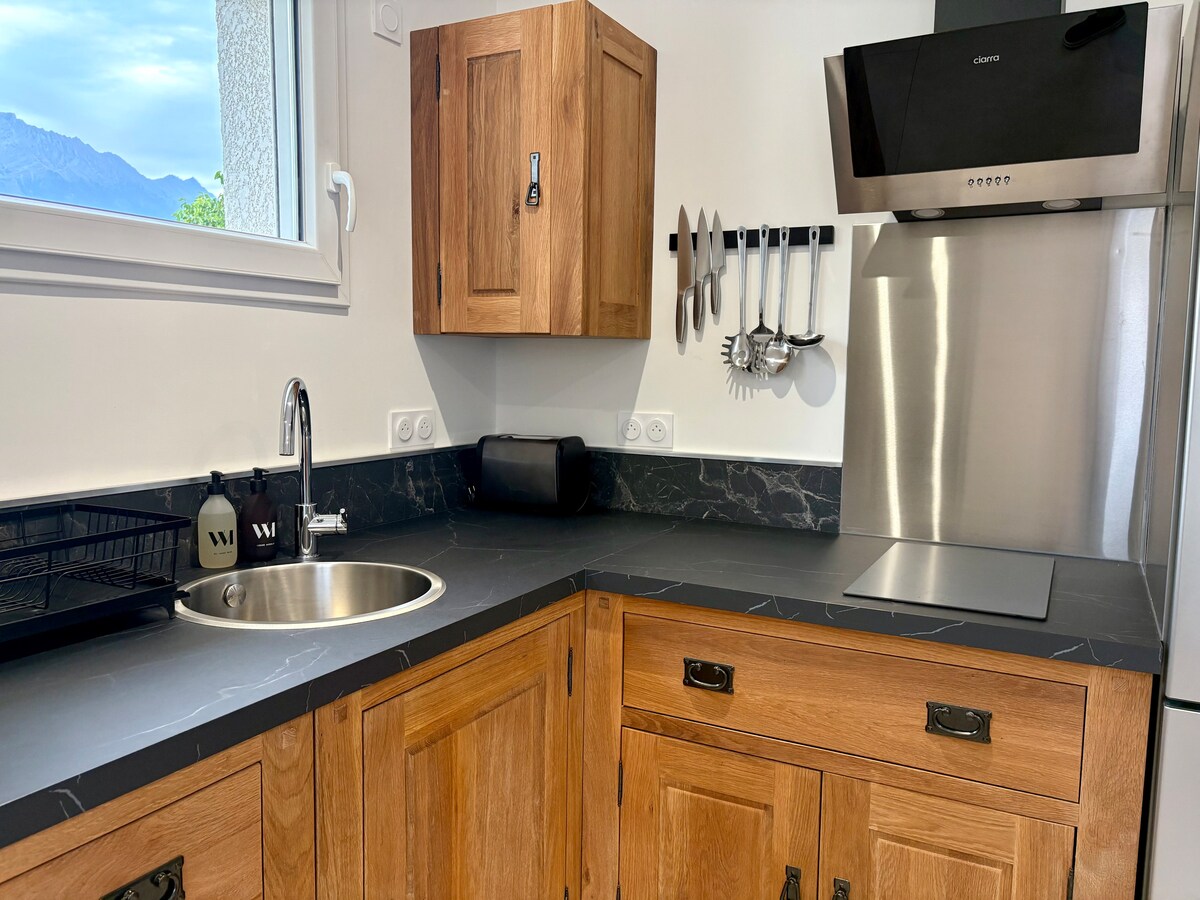 Fantastisk rolig leilighet, helt ny, koselig, med parkeringsplass foran boligen. Sørvendt, du vil ha en fin terrasse og en privat hage (utsikt mot fjellene), du vil nyte et komfortabelt soverom med en stor dobbeltseng, en stue med fullt utstyrt kjøkkenkrok og et bad med separat toalett. Du vil være 45 minutter fra de første skianleggene eller Grenoble, og bare 25 minutter fra Chambéry og Albertville. Motorvei 5 min.