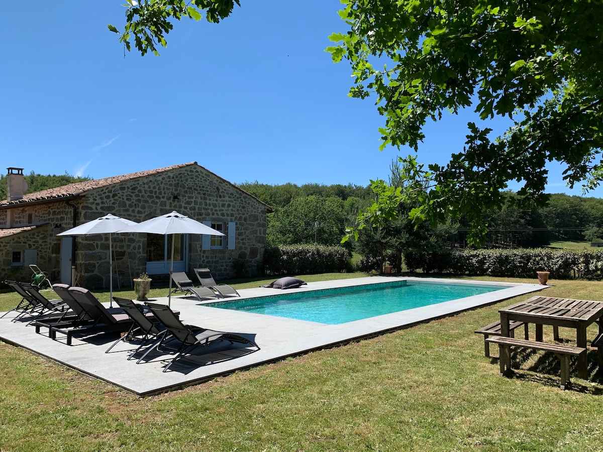 Restaurert gård i Ardèche med oppvarmet basseng