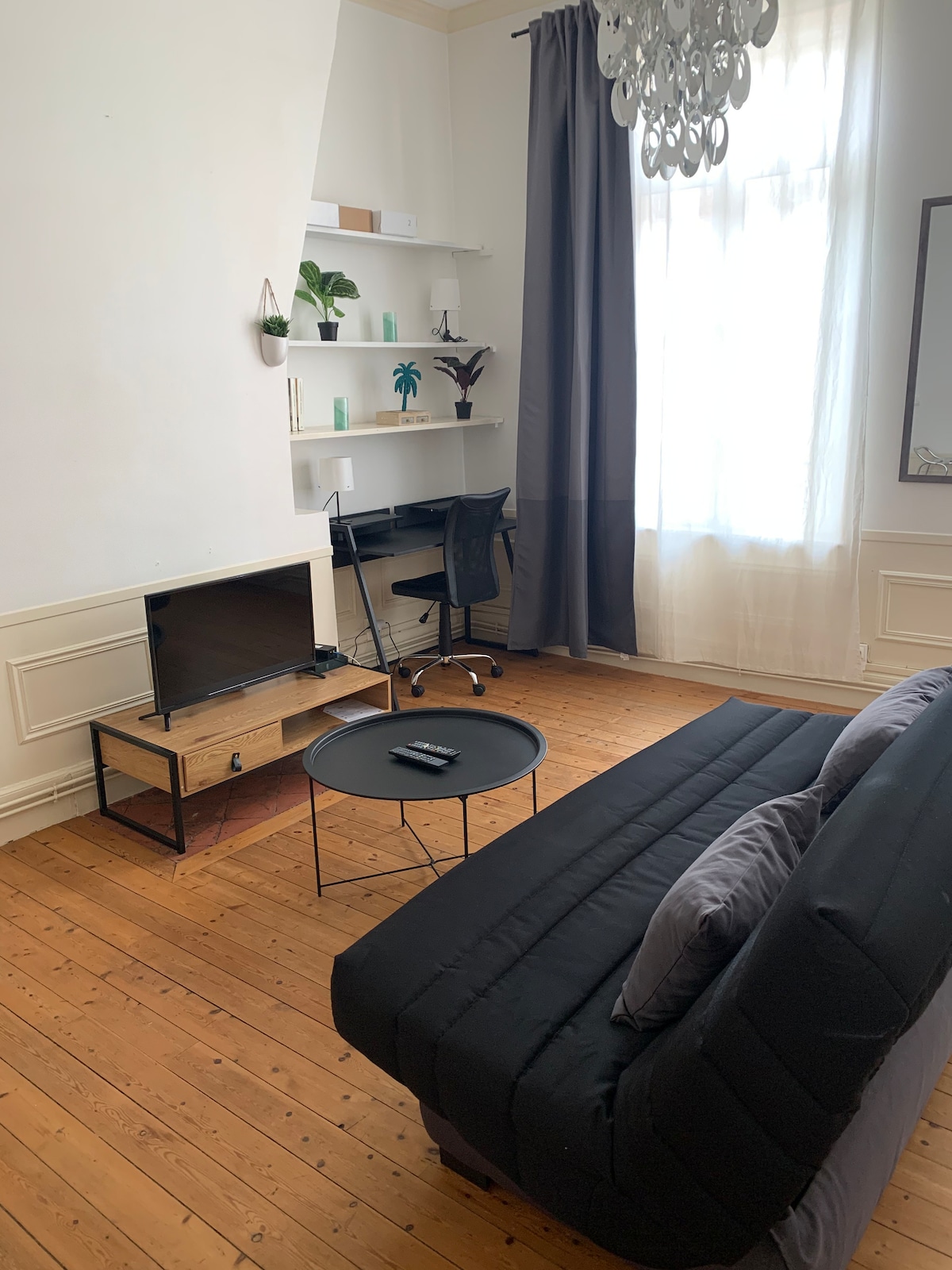 Sjarmerende, lyst to soverom på 45 kvm – Saint-Quentin Center Denne vakre leiligheten på 45 kvm med to soverom kombinerer gammel sjarm med moderne komfort. Du vil nyte det lyse oppholdet med tregulv, kontorområdet og det koselige TV-området for å slappe av. Leiligheten inkluderer også: • et fullt utstyrt kjøkken • Komfortabelt rom. • et funksjonelt bad I nærheten av butikker, restauranter og togstasjonen, er det det ideelle stedet for et profesjonelt eller turistopphold i Saint-Quentin.