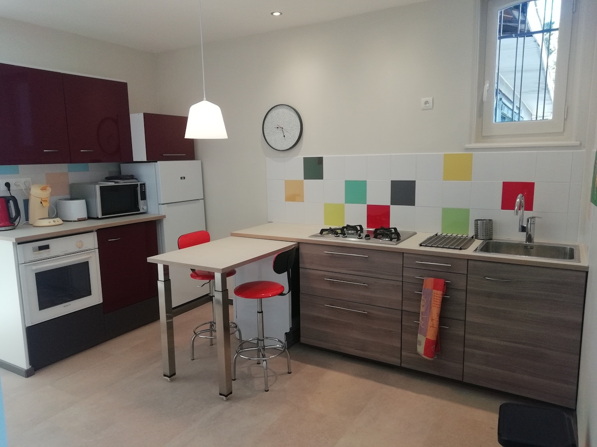 Sjarmerende overnatting, dupleks med alle bekvemmeligheter du trenger for å ha det fint. Med en uteplass som kan nytes fullt ut. Overnattingsstedet er på 50 kvm. Nede finner du et fullt utstyrt kjøkken, og ovenpå har du et soveområde med en komfortabel seng (200/200) samt en sovesofa med plass til to andre personer. Du finner også et TV-område, spill og bibliotek. Nabolaget er stille. Sengetøy/badehåndklær følger med. Trådløst nettverk. Netflix. Freebox TV-kanaler.