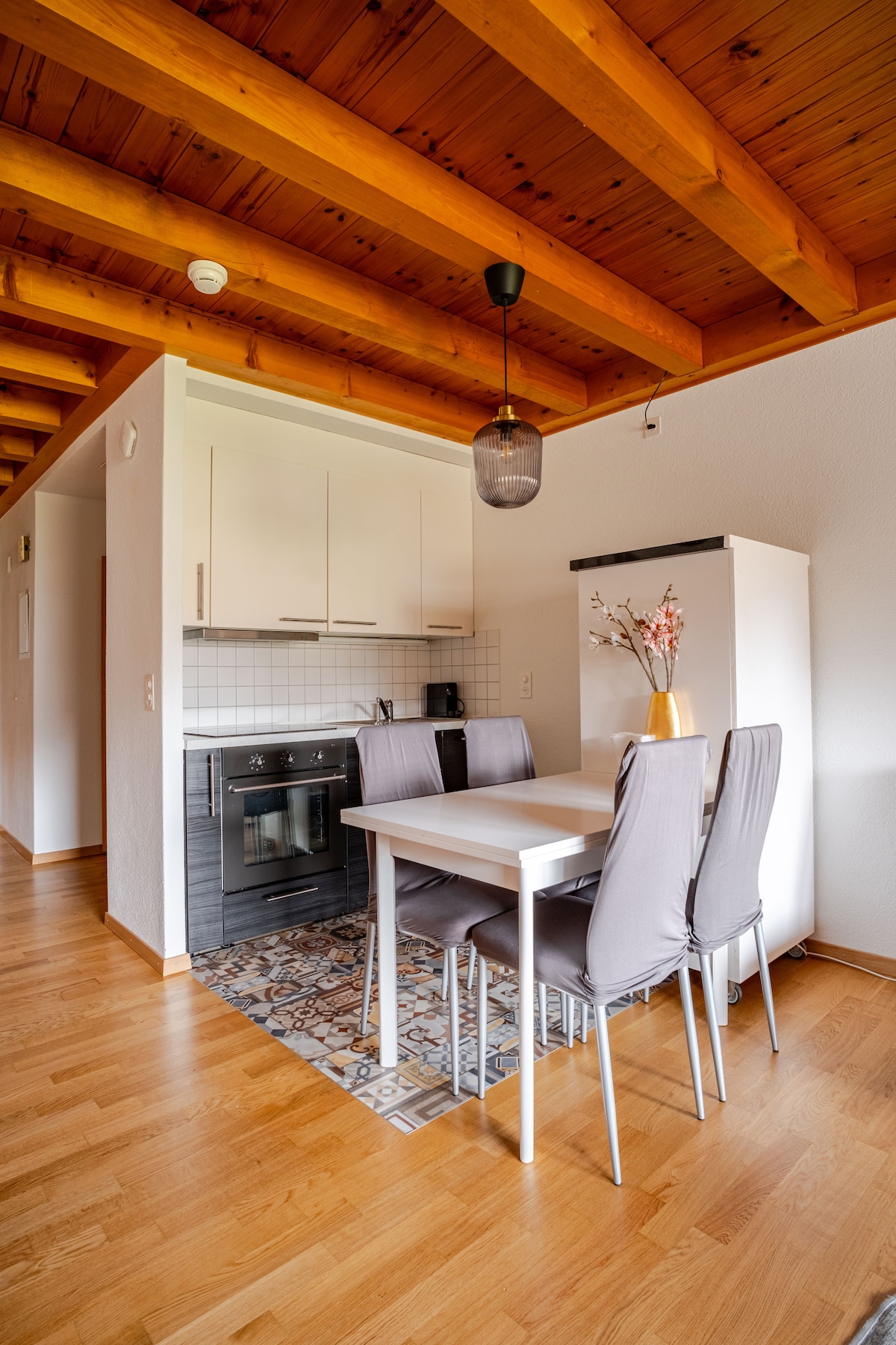 Er du på utkikk etter et magisk opphold i de sveitsiske Alpene? Velkommen til SUNGALOW, hvor tidløs eleganse møter moderne komfort. Nyrenovert i 2024, nyt et fullt utstyrt gourmetkjøkken, stilige oppholdsrom og wraparound balkong med utsikt over innsjøen Thun og Eiger, Mönch og Jungfrau-fjellene. Ligger 10 meter fra bussholdeplassen til Interlaken og Beatenberg stasjon. Familievennlig med en barnepark utenfor, turstier og en felles grillplass. Gratis privat parkering under tak, smart TV og trådløst nettverk.
