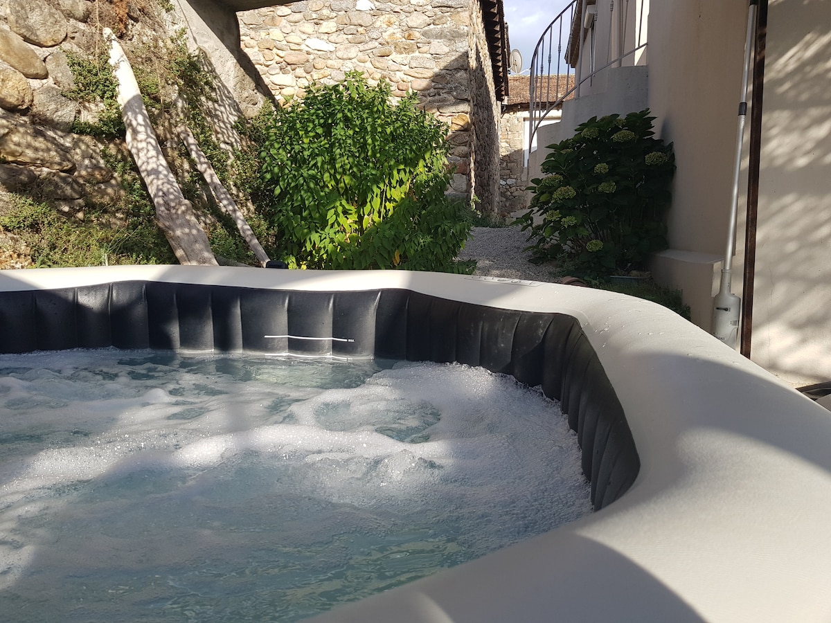 Helt privat hus på 50 kvm på to nivåer, ideelt for en romantisk ferie for to i Ardèche. Nyt et privat 3-seters spa med 50 jetstråler og lysterapi, en koselig stue med stjernehimmel og et soverom med en queensize-seng og utstyrt kjøkkenkrok. Egen inngang for fullstendig privatliv. Vurdert til 4,99⭐ av nesten 500 par. Alt er designet for å bremse ned, møtes og leve et uforglemmelig øyeblikk for to.