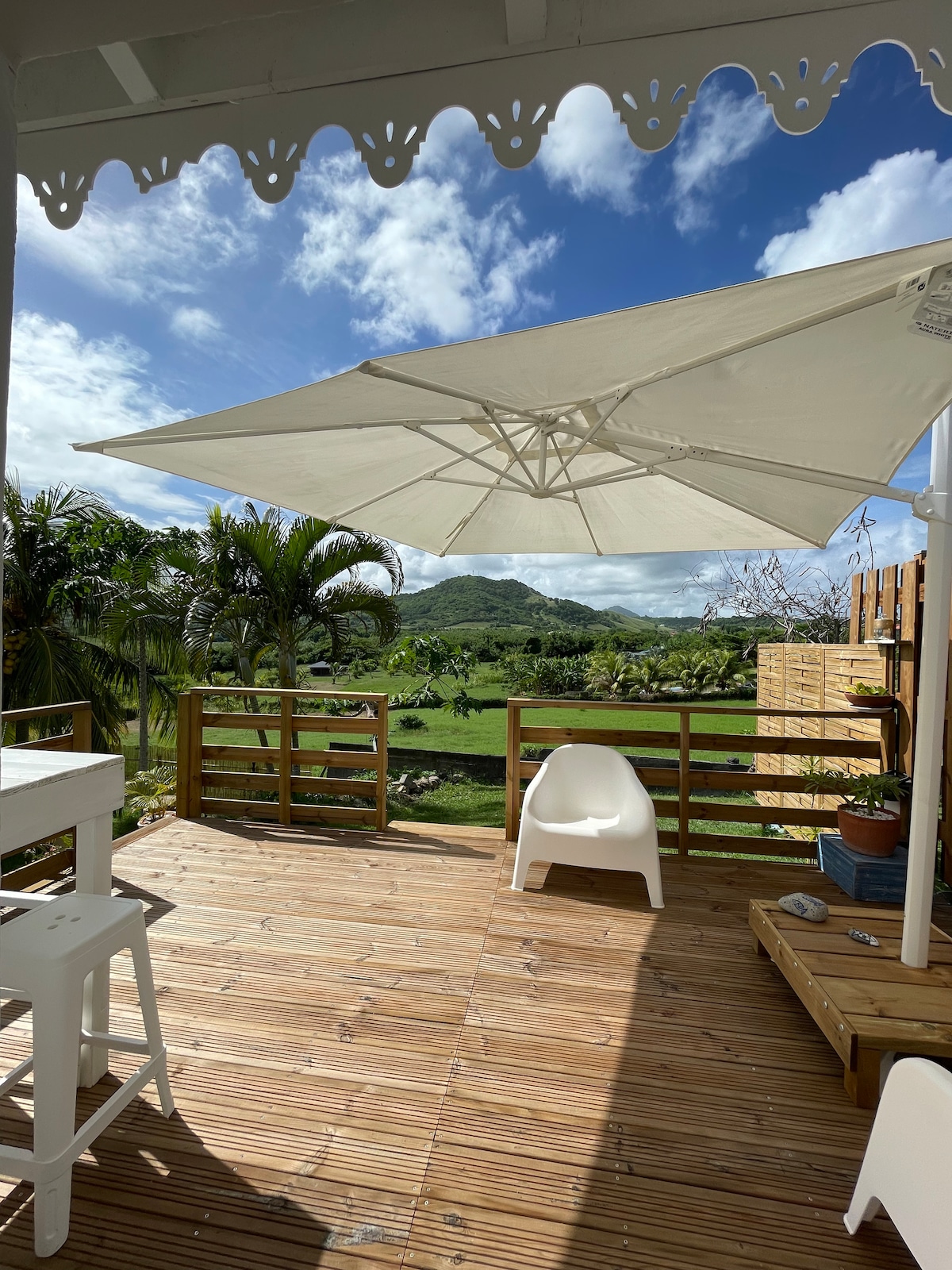 La deg vugge av livets sødme på Île aux Fleurs (spesielt det private bassenget i denne fantastiske tropiske hagen). Denne bungalowen på 36 m2 er fullt utstyrt, luftkondisjonert og uavhengig, og er et fredelig stoppested. Plassert på høyden, i en oase av fred, et steinkast fra den turkise bukten Marin og de vakreste strendene, opplev Martinique på en annen måte. Ronald er også privat pilot. Oppdag øya og dens vakre strender sett ovenfra i fly med ham i turistfly.