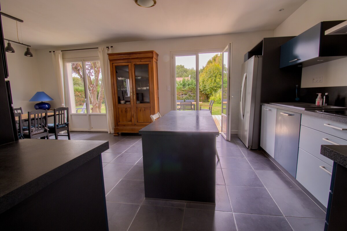 Kom og oppdag vår landlige boble nær havet: La Cantinière. Romslig hus på 120kvm, med en vakker terrasse på 25kvm og skogkledd hage på 400kvm. Rolig plassert nederst i en blindvei på landet, er det det perfekte stedet for å samles med familie eller venner. Ideell beliggenhet bare ti minutter fra Les Sables d 'Olonne og strendene, og 1 time Puy du Fou vil jeg bli glad for å ønske deg velkommen og dele rikdommen i vår vakre region.