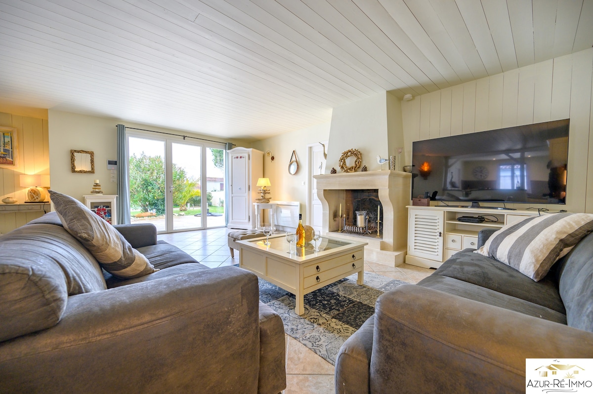 Vakkert hus på 230 m², leid med 3 soverom, 3 bad, 3 toaletter, utstyrt kjøkken, utedusj og oppvarmet privat basseng, trippelparkering på den anlagte hagen. Utendørs overvåkningskameraer. Høyhastighets fiber + bærbar 4G-boks. Tre minutters gange fra sentrum av landsbyen og tre minutters gange fra stranden i La Salée. Île de Ré er veldig populært for solskinn, sandstrender og eksepsjonelt natur, og er det perfekte reisemålet for ferien din.