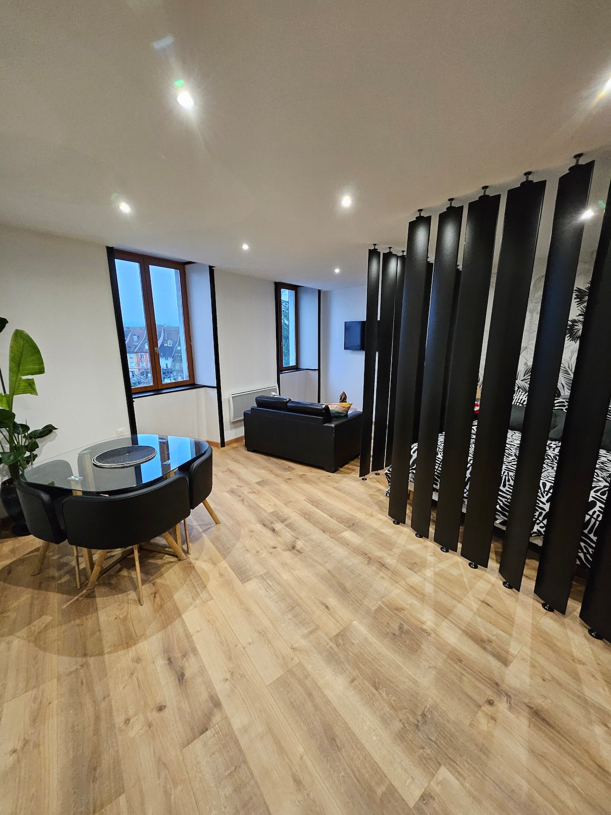 Denne leiligheten ligger📍 ideelt til i rue Clemenceau, i utkanten av gågaten og et steinkast fra julemarkedet, og tilbyr total fordypning i den varme atmosfæren i sentrum. 🌟 Renovert med omhu, har vi bevart den autentiske karakteren til denne vakre bygningen, samtidig som vi har tilført den noe moderne. Den atypiske korridoren gir den en unik sjarm!