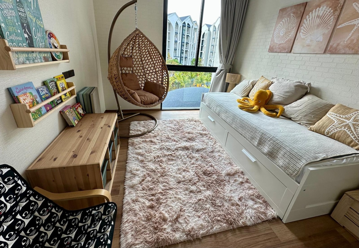 Velkommen til din perfekte familieferie i Phuket! Dette stilige og romslige feriestedet ligger bare en kort spasertur fra stranden, og tilbyr en rolig flukt med moderne bekvemmeligheter for familier og venner. Hjemmet vårt er designet med små reisende i tankene, og er fylt med morsomme barneleker, bøker og spill for å holde dem underholdt, sammen med andre babyartikler for et stressfritt opphold og en morsom familieferie!