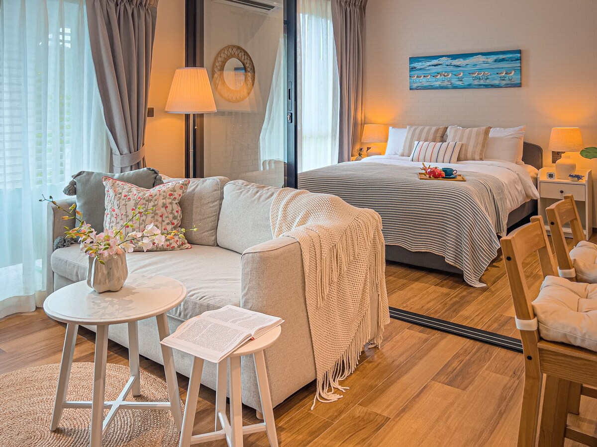 Blossom Bay: Koselig ettromsleilighet, 350 meter til NaiYang Beach.