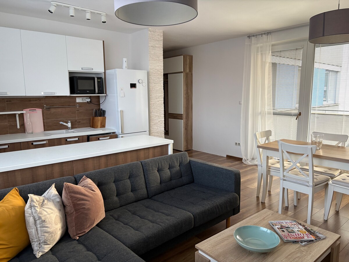 Leiligheten er også ideell ti minutters gange fra sentrum + Homeoffice fordi det skiller rom med dører. Tre rom flat 64 kvm, kjøkken (3x3,5) , stue med én seng (6,5x3,5) , soverom med én stor seng (3,5 x 3,5), separat toalett, restauranter og shopping fem minutters gange fra leiligheten. Parkering gratis. Også mulig å gi tilbud om overføring fra. Flyplass Bratislava eller Wien