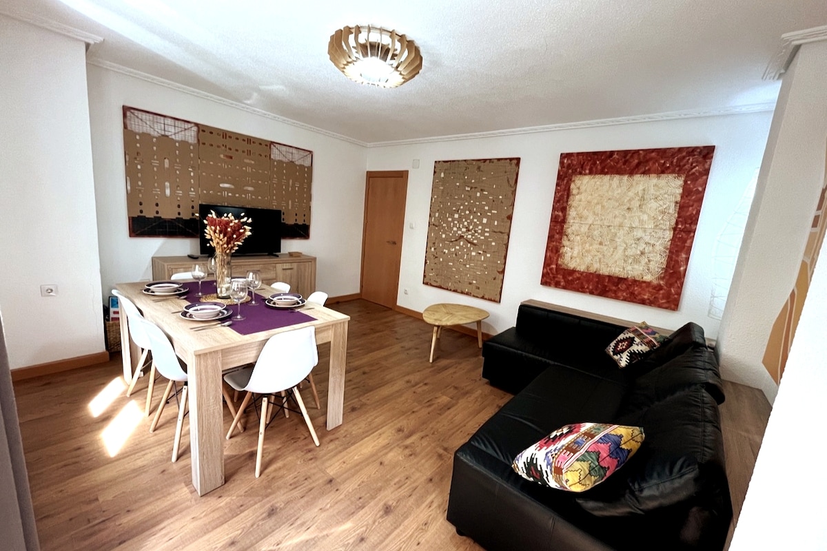 Fullstendig renovert leilighet i en av hovedgatene på vei til Plaza Mayor. Leiligheten ligger fem minutter fra hovedtorget. Beliggenheten er perfekt for å oppdage byen til fots. Det moderne og funksjonelle designet garanterer gjestenes komfort. Leiligheten har tre dobbeltrom, kjøkken/stue og to bad. Den er fullt utstyrt med håndklær, sengetøy, husholdningsapparater og kjøkkenutstyr. Ideelt for familier. Reiseseng tilgjengelig. Parkering mot betaling tilgjengelig i nærheten.