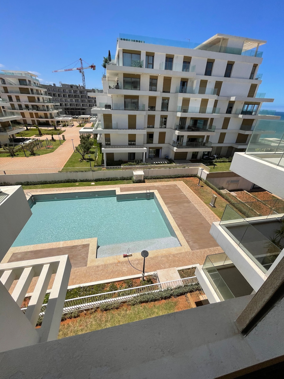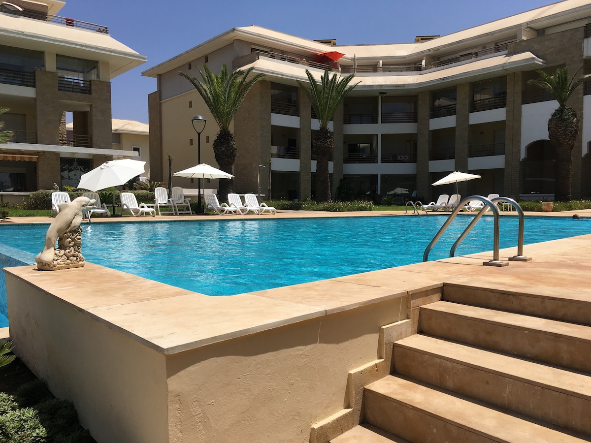 Beliggende rett overfor det nye kjøpesenteret "Mall du carrousel", kan du nyte en elegant og unik bolig i den prestisjetunge boligblokken "Le phare du carrousel" ved sjøen i hjertet av Rabat. Den har et treningsrom, fotballbane, utendørs sportsområde, lekeplass for barn og et svømmebasseng. Leiligheten skiller seg ut med sin vakre utsikt over havet og bassenget fra terrassen og den private hagen. En liten, luksuriøs oase, møblert og dekorert av Inn designstudio.