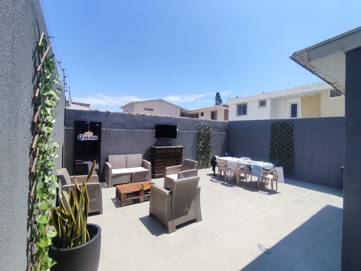Dette huset ligger bare noen skritt fra stranden, og er en favoritt blant gjestene våre på grunn av beliggenheten, romsligheten, komforten og sikkerheten. Plass til opptil ti personer, ideelt for store familier eller vennegjenger. Den har et fullt kjøkken, terrasse med grill, raskt trådløst nettverk og en privat og trygg garasje for 2–3 biler. Kjæledyrvennlig. Beliggende i nærheten av Mi Comisariato, butikker og restauranter, alt innenfor gangavstand for å nyte Salinas uten bekymringer.