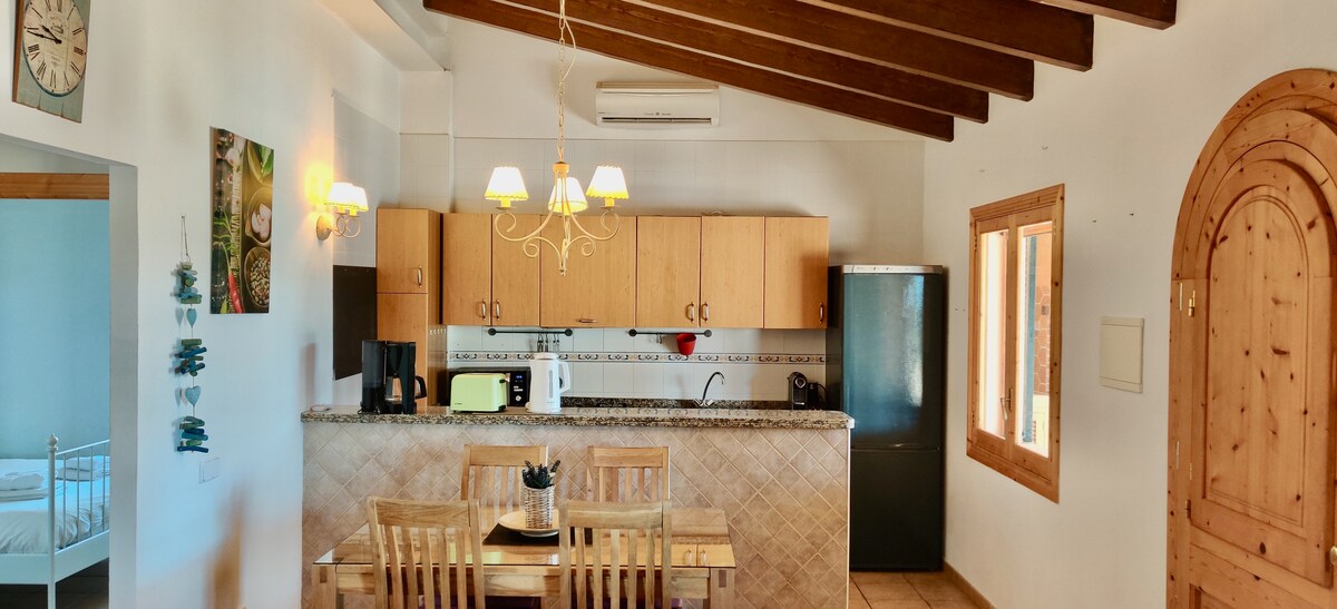 Denne vakre eiendommen ligger ved siden av den pittoreske landsbyen Campanet. Du kan nå byen på en hyggelig 15 minutters spasertur. Ikke langt unna er det et sportssenter og en tennisbane. Dette er et komfortabelt hus på landet for fire personer, det har blitt fullstendig restaurert nylig, kombinerer moderne design med komfortable og elegante møbler med tradisjonelt utseende.