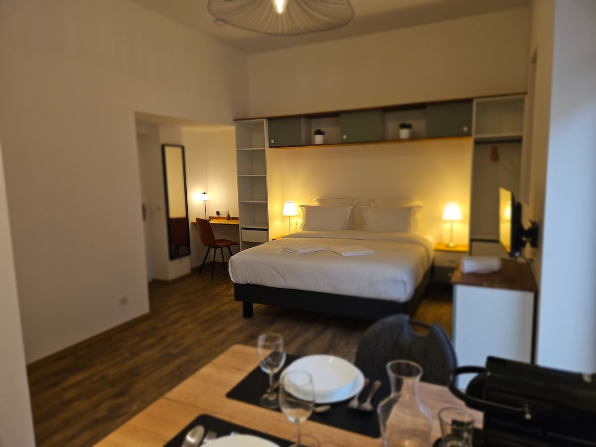 ✨ Bo på La Bastide Foch Apartment Hotel Denne elegante leiligheten i første etasje med privat terrasse har en ideell beliggenhet, nær Place Morgan og sentrum, og tilbyr deg alle nødvendige bekvemmeligheter for et hyggelig opphold. Ultrakomfortabel king size-seng, faste og myke puter, trådløst nettverk med høy hastighet, tilkoblet TV + Netflix, utstyrt kjøkken. Skinnende ren og parkering i nærheten. Alt er der for et komfortabelt og rolig opphold.