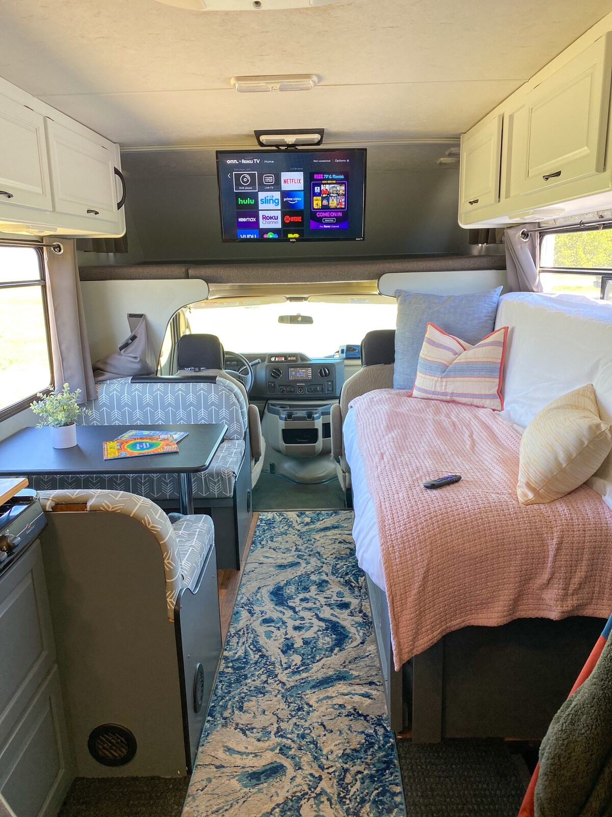 •Flat screen smart tv and surround sound (Compatible with Netflix, Hulu, Xfinity and more) • Bluetooth Touchscreen & DVD Player (Connects to tv so you can watch tv and lounge) •Speakers & Subwoofer inside and outside of the rv •Color changing outdoor lighting •Lots of storage •3 Queen Beds •Shower •Remodeled full bathroom •Pull out rooftop sunshade •Built in generator/full hookup connections •AC/Propane Heater •Microwave/Stove/Kitchen Supplies