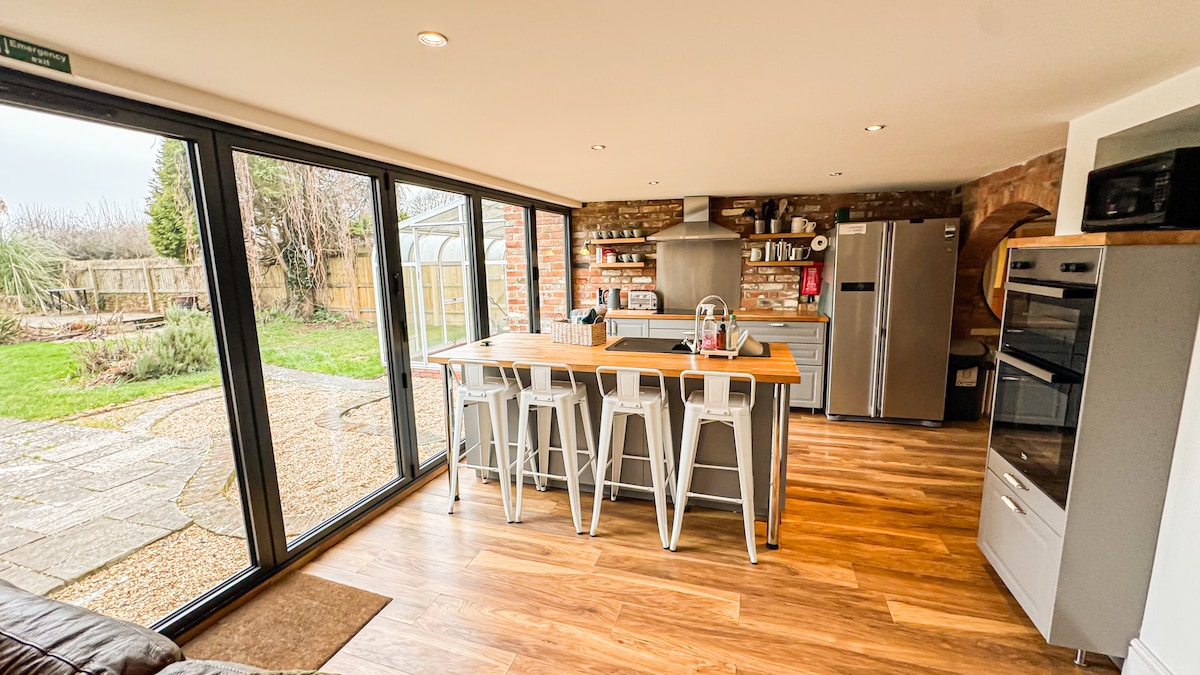 Coach House ligger innenfor den inngjerdede eiendommen til det georgianske hjemmet vårt, og det har nylig gjennomgått en fullstendig oppussing. Nå kan det skryte av en luksuriøs og moderne levestil. Dette inkluderer et åpent kjøkken, spisestue og stue, hvor kjøkkenet har integrert kjøleskap, fryser, kokeplate, dobbel stekeovn, oppvaskmaskin og vaskemaskin. Spisebordet kan utvides og har komfortabelt plass til 12 personer, noe som gjør det perfekt for familie/venner å samles.