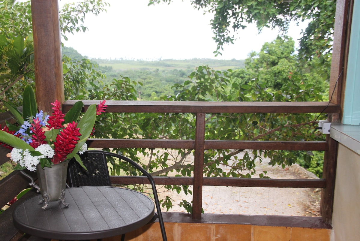 Uavhengig bungalow/leilighet med alle fasiliteter i Villa Serenidads tropiske hage med privat terrasse, rask Starlink-trådløst nettverk og rolig område fem minutter fra Punta Popy-stranden • ett dobbelt soverom • klimaanlegg og vifte • Utstyrt kjøkken • privat bad med varm dusj • privat overbygd terrasse med hengekøye • TV med Netflix inkludert. • Delt basseng • gratis parkering Ideell for par, alenereisende eller digitale nomader som søker avslapning og privatliv i naturen.