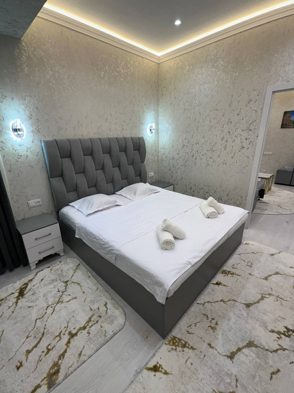 Velkommen til vår splitter nye og koselige leilighet i hjertet av Samarkand! Du kommer til å føle deg som hjemme her. Leiligheten er helt ny, med moderne design og finish av høy kvalitet. Den har alle nødvendigheter: et fullt utstyrt kjøkken, et komfortabelt soverom, høyhastighetsinternett og en varm atmosfære. Beliggenheten er perfekt for å utforske historiske landemerker, og det ligger kaféer og butikker i nærheten. Vi er sikre på at oppholdet ditt blir både komfortabelt og minneverdig!