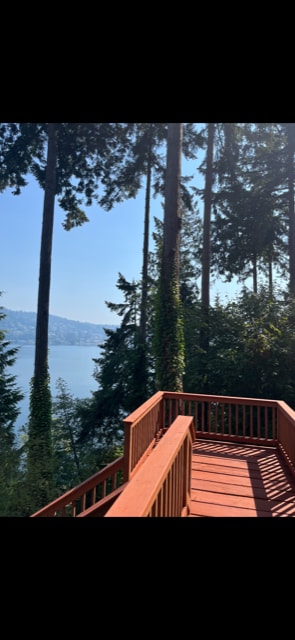 Hele den øvre enheten av huset med utsikt over innsjøen i Seattle-området (Sammamish) er din – det er to helt separate enheter med separate innganger. Bare den øvre enheten er til leie. Den nedre enheten brukes av eieren mens han er i byen. Huset har sentralt klimaanlegg, to soverom (hovedsoverommet har kingsize-seng med franske dører til balkongen, og det andre soverommet har queensize-seng), 1,5 bad og mer! Ingen kjæledyr!