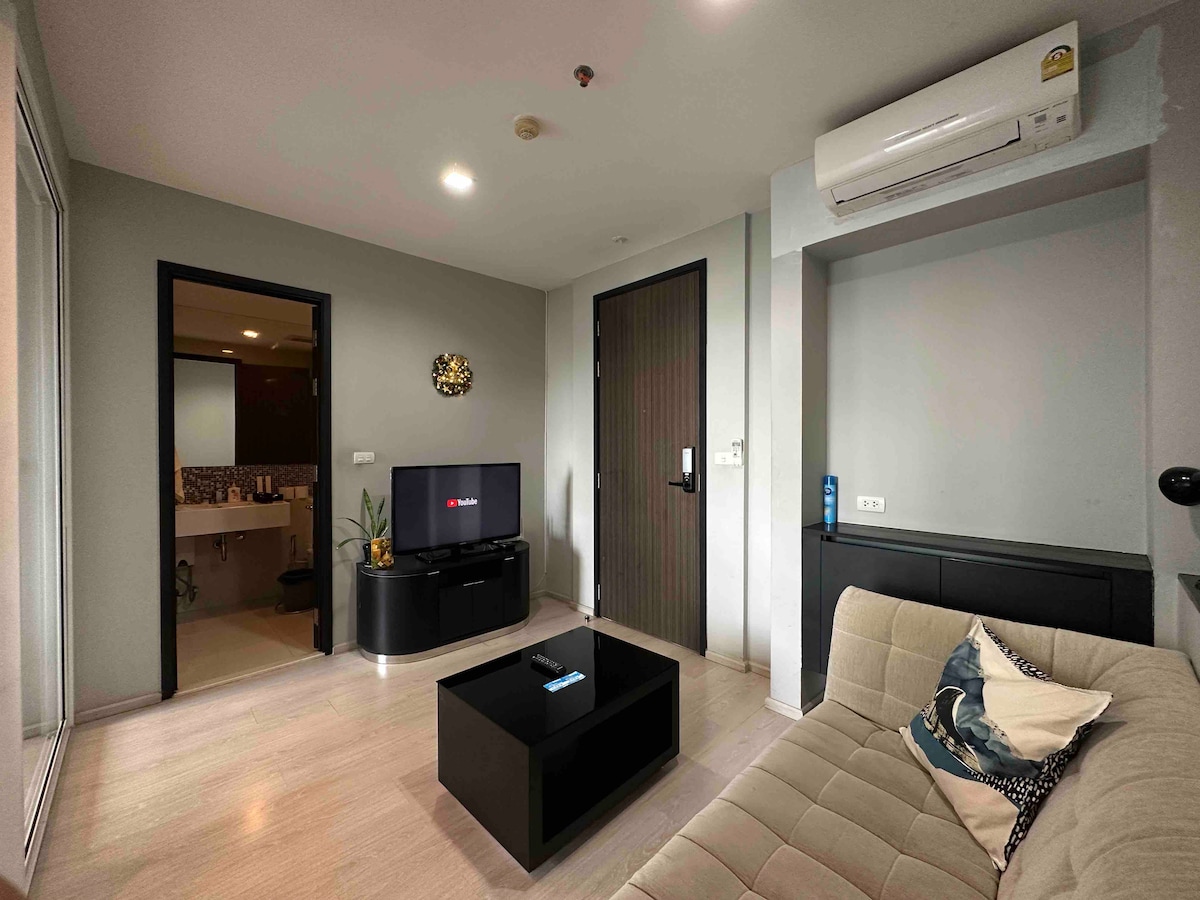 ✨ Moderne og fullt utstyrt 1BR-leilighet med queensize-seng, raskt trådløst nettverk, 40"smart-TV, komplett kjøkken, vaskemaskin. Nyt basseng, treningsstudio, badstue og sosial lounge. Stille bygning bare fem minutters gange til BTS Punnawithi og ett minutt til True Digital Park Mall. Enkel tilgang til Phrom Phong, Siam med mer. Perfekt for par, enslige reisende eller fjernarbeidere. Parkering på forespørsel.