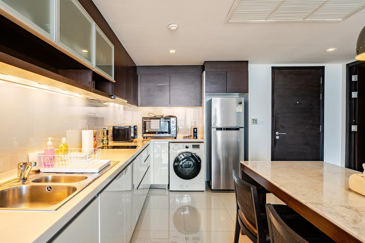 Opplev den ultimate bekvemmeligheten i vår romslige leilighet med tre soverom! Beliggende i hjertet av byen, gir vår førsteklasses beliggenhet deg bare noen skritt unna berømte restauranter, trendy kafeer og kjøpesentre. Selv i trafikken vil du enkelt kunne komme deg til mange steder. Enten du er her for forretnings- eller fritids- eller familiereiser, tilbyr leiligheten vår den perfekte blandingen av komfort og tilgjengelighet. - 6 minutter til QSNCC - 15 minutter til Siam Paragon - 15 minutter til Asiatique - 20 minutter til ICONSIAM